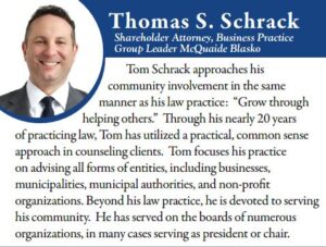 Attorney Thomas Schrack was named as one of the most influential Men in the Community by Town & Gown. Tom maintains a comprehensive business practice and is devoted to serving his community.